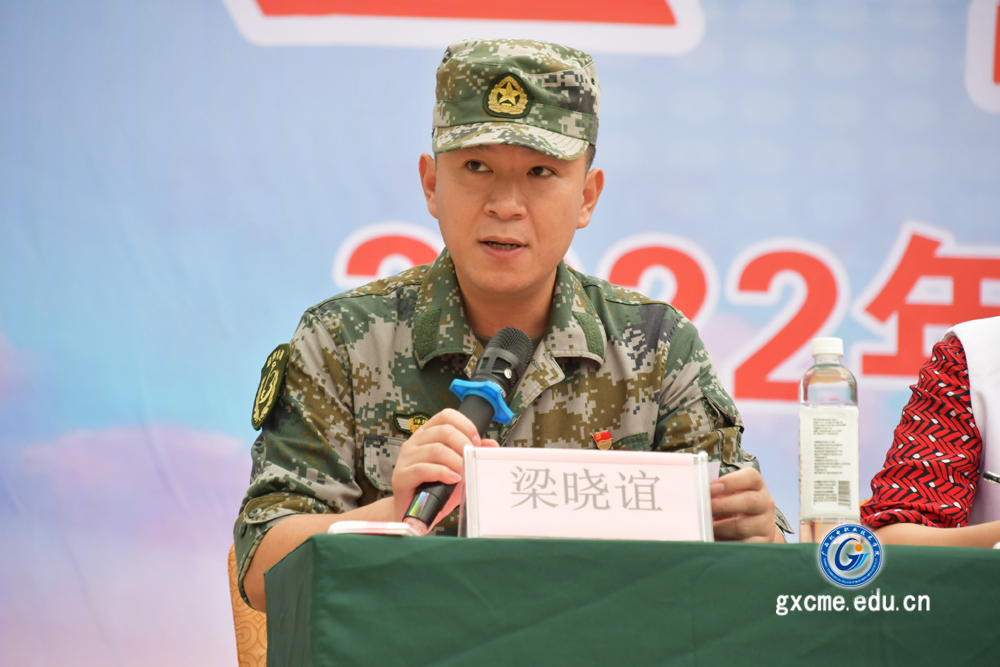 广西绿邦国防教育训练基地副主任梁晓谊在会上发言