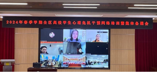 2024年3月5日,为做好学生心理危机排查和干预工作,提升心理危机干预工作的针对性和实效性,万象城官网组织全校专、兼职辅导员及心理健康教育中心全体教师参与2024年春季学期全区高校学生心理危机干预网络培训暨集体备课会。本次培训由广西教育厅主办、广西师范大学承办、中国地质大学(武汉)学生心理健康教育中心郭兰教授主讲。