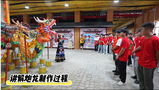 在柳州南宁“探寻工业兴国,探秘宾阳非遗”资助育人研学路线,受奖助研学学生体验“广西工业第一城”科技的魅力,走进“民族企业”宝骏汽车城,学习民族工业发展史,了解当今民族汽车业的迅猛发展和其中蕴含的各类尖端科技,认识民族工业的世界地位,树立对民族自信心,提升民族自豪感,领悟“工匠精神”;参观柳州螺霸王洛维产业园,见证“一碗粉”和“九种配料”生产全过程,了解小米粉是如何做成大产业的;到宾阳了解炮龙非遗文化,体验做炮龙的各个环节,从扎龙爪到剪龙头、画龙鳞、贴龙鳞,同学们专心致志,感受到手工劳作的苦与乐,学习舞龙基本动作,练习传统鼓、锣和镲,在活动中感受民族文化的厚度,增强文化自信,铸牢中华民族共同体意识。