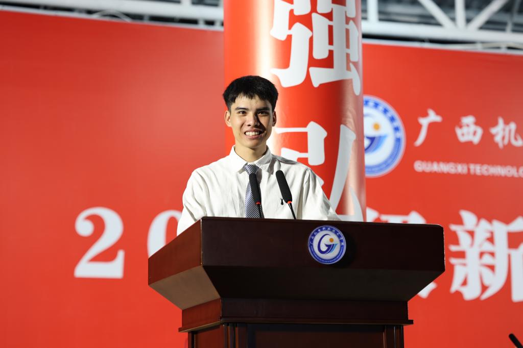 吴世先代表全体师生对2025级新同学的到来表示热烈欢迎,祝贺同学们成为光荣的“机电人”,期待同学们在建设“广西领先、国内一流、国际知名高水平智能制造特色校”的征程中贡献自己的青春力量。