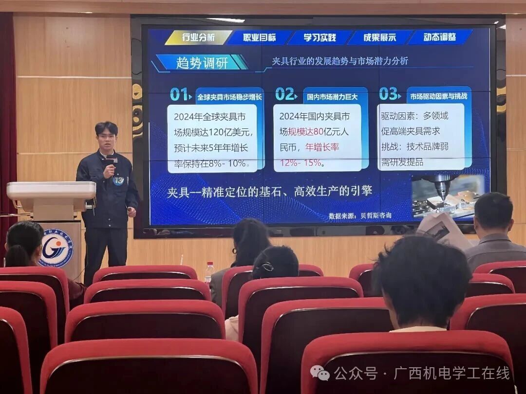 决赛现场,选手们精神饱满、自信从容,通过 PPT 展示与现场陈述相结合的方式,逐一呈现自己的职业规划蓝图。他们从自我认知出发,结合专业特长、兴趣爱好与职业价值观,深入分析行业发展趋势与就业市场需求,明确了清晰的职业目标与发展路径。