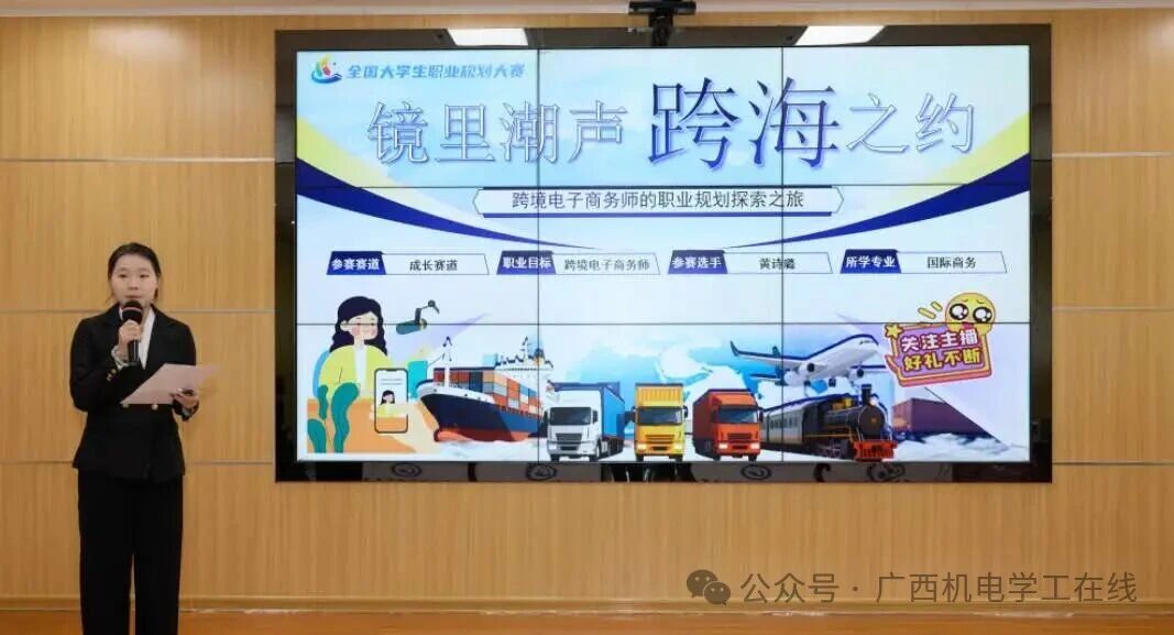 比赛过程中,选手们精神饱满、从容自信。有的希望成为有温度的摄影师,有的立志扎根基层成为驻村队员,有的梦想以跨境电商为桥梁奔赴中越跨海之约。选手们结合专业学习经历,从兴趣特长出发,通过生动的案例、详实的数据和清晰的逻辑,分析行业发展趋势,展示自己规划的职业成长路径。答辩环节,选手们反应敏捷、思路清晰、应答从容,充分展现了当代大学生良好的专业素养和职业潜力。