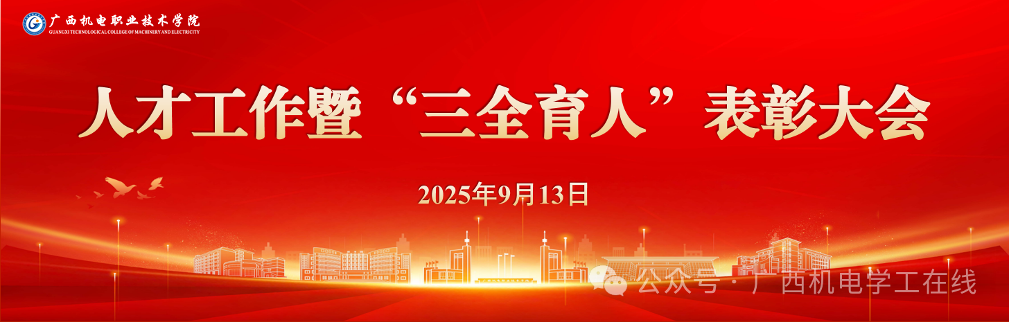 9月13日下午,学校在大礼堂召开2025年人才工作暨“三全育人”表彰大会,会上对“三全育人”先进集体与个人进行了表彰。学校党委书记黄小敬做了题为《凝聚共识 荟萃英才为全面建设广西领先 国内一流 国际知名高水平智能制造特色校提供人才支撑》的报告,报告系统总结过去三年学校人才工作成绩与经验,分析当前面临的新形势新任务,部署今后一个时期的重点举措;动员全校上下统一思想、凝聚共识、坚定信心、鼓足干劲,开创学校人才工作新局面,为加快建设“广西领先、国内一流、国际知名高水平智能制造特色校”提供坚实的人才支撑和智力保障。大会由党委副书记、校长吴世先主持,全体校领导和教职工参加大会。
