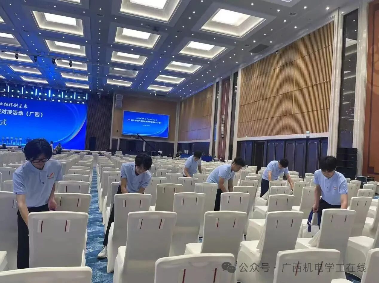 7月20日,国家级战略平台——“2025中国产业转移发展对接活动(广西)”在南宁国际会展中心盛大启幕。本次活动以“AI赋能谋新篇,产业协作创未来”为主题,汇聚工信部及自治区主要领导、1400余名产业精英,通过“1+4+N”系列专题推动人工智能、高端装备制造等前沿领域合作。在这场事关广西产业升级的盛会中,万象城官网作为唯一高校服务团队,派出108名志愿者全程服务,成为活动中最亮眼的“青春名片”。