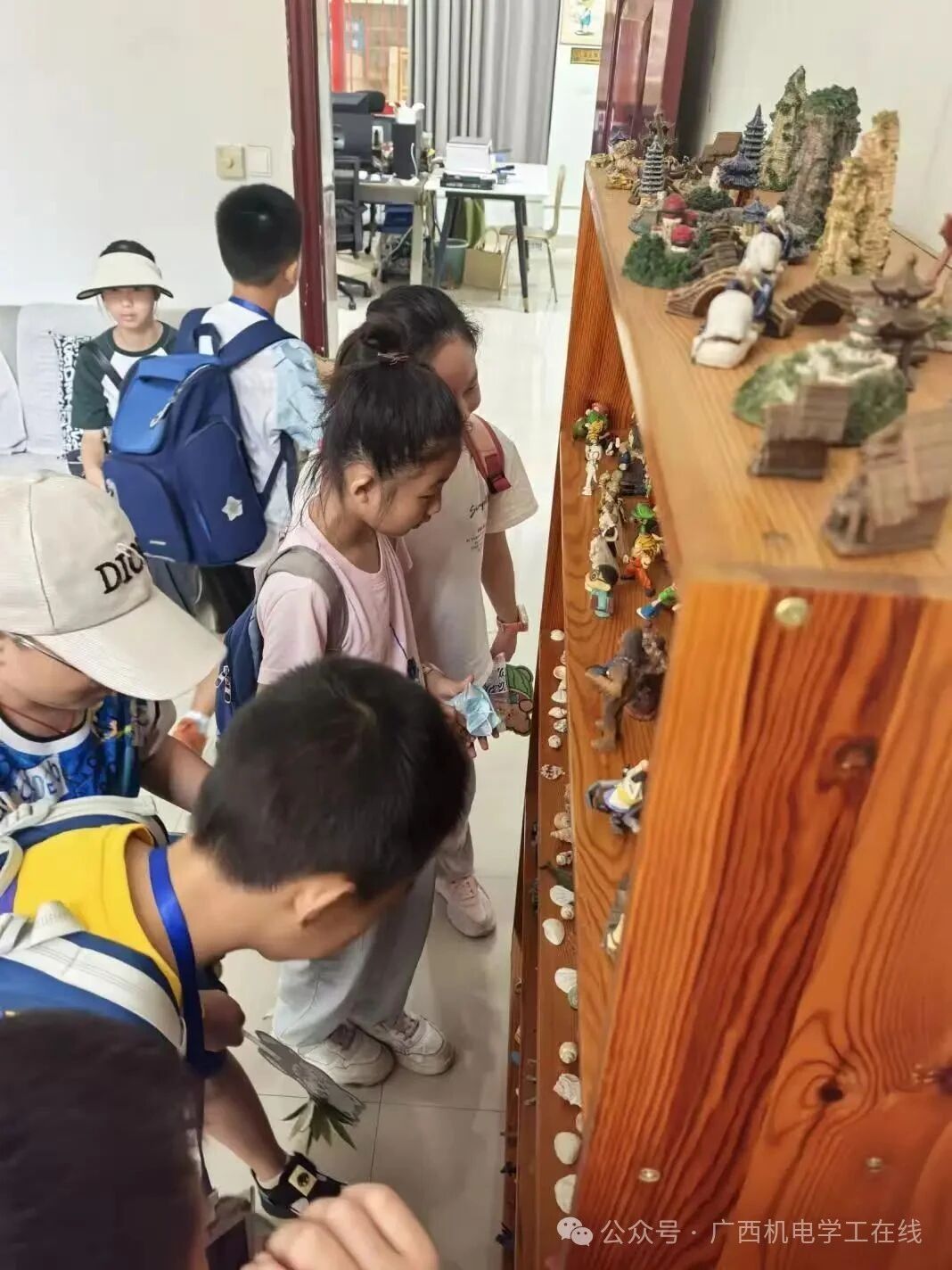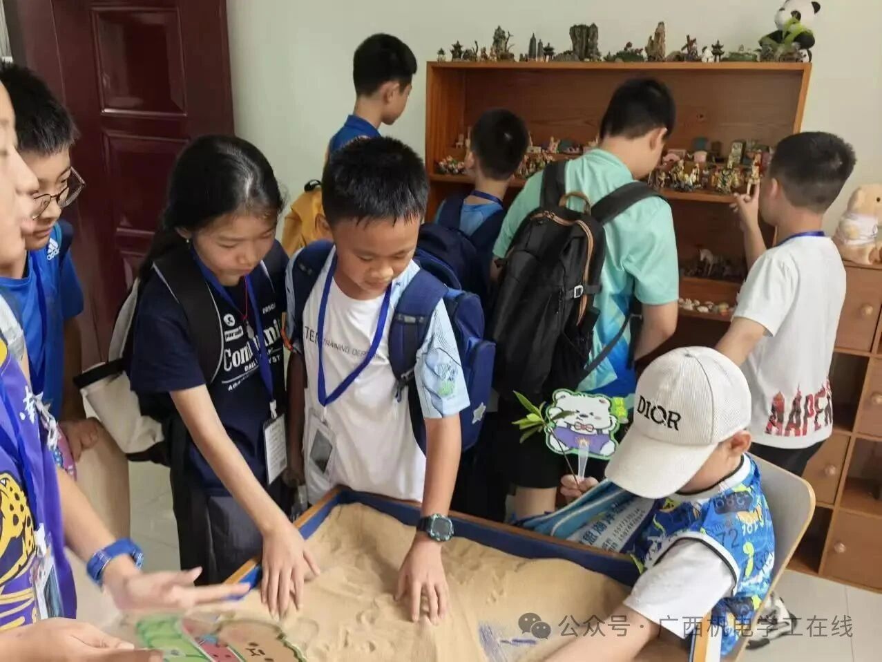 本次接待活动由刘锋老师带领。小朋友们一走进沙盘室,小朋友们就被中央那方蓝色底的沙盘吸引了目光,纷纷好奇地探头打量。老师微笑着走到沙盘旁,先是让孩子们伸出小手摸了摸细腻的白沙,“大家感觉怎么样?是不是像踩在沙滩上一样舒服呀?”孩子们叽叽喳喳地回应着,脸上满是新奇。