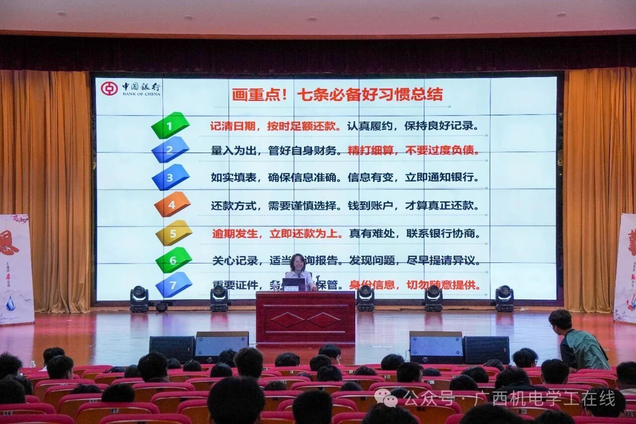 讲座现场,韦新星副行长凭借资深银行业务经验,围绕征信知识、金融风险防范、个人信用维护、校园贷危害等核心内容,通过鲜活的案例剖析、通俗易懂的讲解,为同学们揭示诚信在个人成长与职业发展中的关键作用。她以详实的数据和真实案例,深入解读个人征信记录对大学生毕业后贷款、求职等人生重要环节的深远影响,强调良好信用记录是个人宝贵财富,及信用污点可能带来的严重后果。针对屡禁不止的校园贷问题,层层拆解不良网贷的常见套路,警示同学们树立理性消费观,提升自我保护意识,远离不良网贷陷阱。互动环节中,同学们踊跃提问,现场气氛热烈活跃。