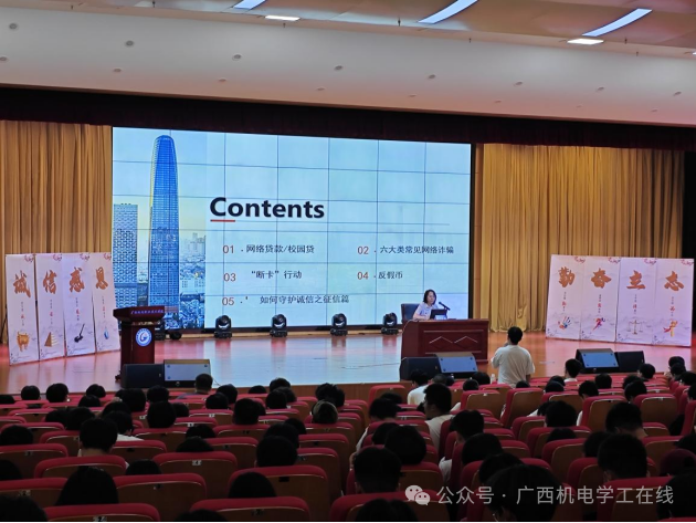 为深化学生资助工作与思想政治教育融合,全方位加强家庭经济困难学生的诚信、感恩、励志教育及金融常识普及,6月24日下午,2025年全区高校学生资助“诚信教育主题月”巡回讲座在万象城官网博远楼开讲。活动特邀中国银行广西分行新阳西支行副行长、中国银行总行级讲师韦新星担任主讲,以《拒绝诈骗 守护诚信》为题,为师生带来了一场精彩纷呈的诚信教育课程。本次讲座由学生工作处副处长钟华主持,学生资助管理中心全体成员及600余名国家助学贷款学生代表共同参与。