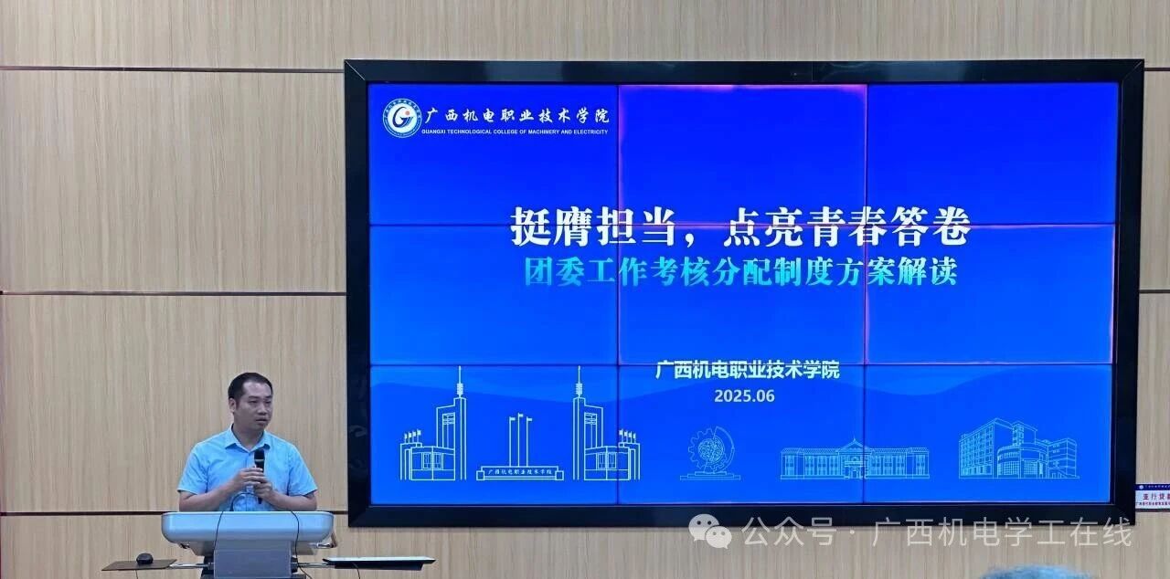 韦世友从智慧团建、团员发展、推优入党等方面解读共青团工作考核,强调要强化思想引领,规范组织生活,提升团课质量,并鼓励积极参与“挑战杯”等赛事,打造共青团工作品牌。
