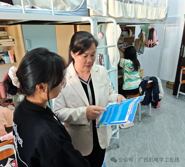 为扩大宣传覆盖面,确保考证指导全覆盖,学院学工队伍创新开展“考证送学进宿舍”专项行动。学院党委副书记覃媛带领辅导员队伍深入学生宿舍,以“拉家常”的方式向学生讲解考证相关知识、政策变化,精准引导学生结合专业成长规律及职业发展目标,并提前做好学业与职业规划。同时,针对部分学生存在的“考证焦虑”“盲目跟风考证”等问题,辅导员队伍通过身边典型案例剖析,直观展现理性考证对职业发展的助力,引导同学们树立“以考促学、学用结合、循序渐进”的科学规划观,避免盲目考证,确保证书考取真正服务于专业技能提升与职业发展。