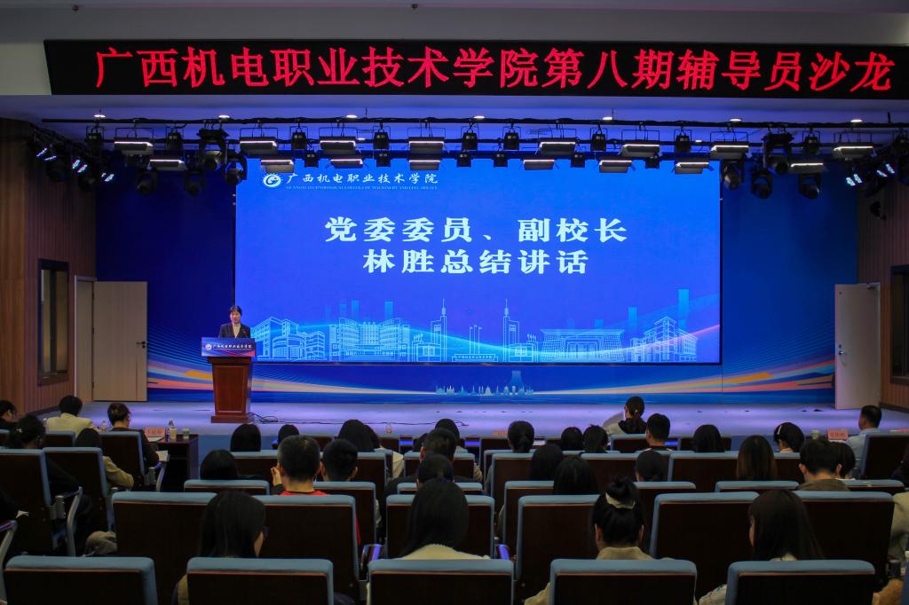 案例分享结束后,学校党委委员、副校长林胜作总结讲话,传达了教育部全国高校辅导员人工智能专题培训班精神,重点解读了教育部党组书记、部长怀进鹏关于辅导员队伍建设的相关要求,明确高校辅导员队伍是与高校教学、科研、管理同等重要的“第四支队伍”。林胜指出,本次活动既是对“十四五”收官之年学生工作的全面复盘,也是对辅导员队伍履职成效的集中检阅。各学院的案例汇报全面覆盖辅导员九大核心职责,生动展现了万象城官网辅导员将工作主责主业精准转化为育人实效的务实作风。针对下一步工作,林胜提出三点期望和要求,一要在思想引领上显深度,做学生成长的“引路人”;二要在精准服务上有温度,做学生信赖的“贴心人”;三要在品牌建设上强力度,做育人创新的“带头人”。她勉励全体辅导员要自觉秉持“躬耕教坛、强国有我”的坚定信念,常怀“时时放心不下”的责任担当,锤炼“事事落实到位”的过硬执行力,在立德树人的赛道上奋力奔跑,为广西产业发展培育更多“德技并修”的栋梁之材,为职业教育高质量发展作出新的更大贡献!