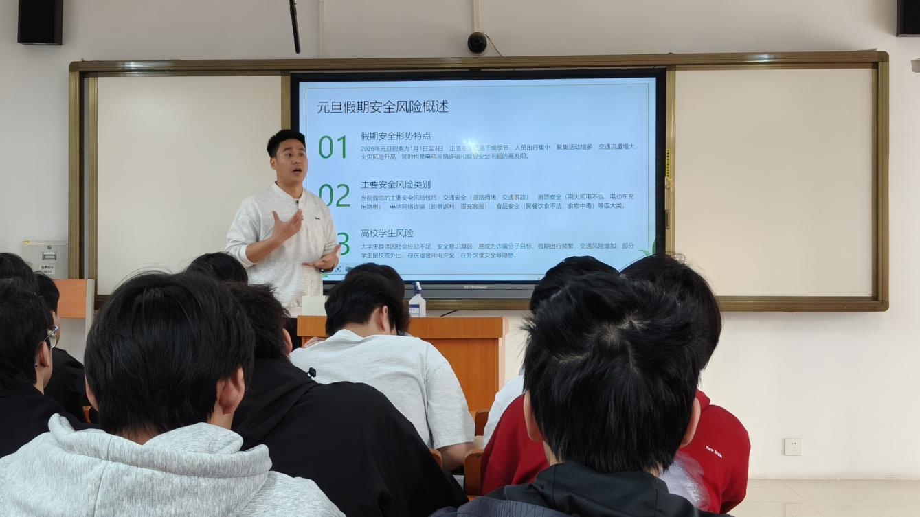 为切实筑牢元旦假期校园安全防线,精准提升假期学生安全教育的针对性与实效性,同时以听促教、检验辅导员主题班会课教学质量、锤炼育人能力,2025年12月29日下午,学生工作处牵头组织开展2026年元旦安全教育主题班会课现场听课活动。