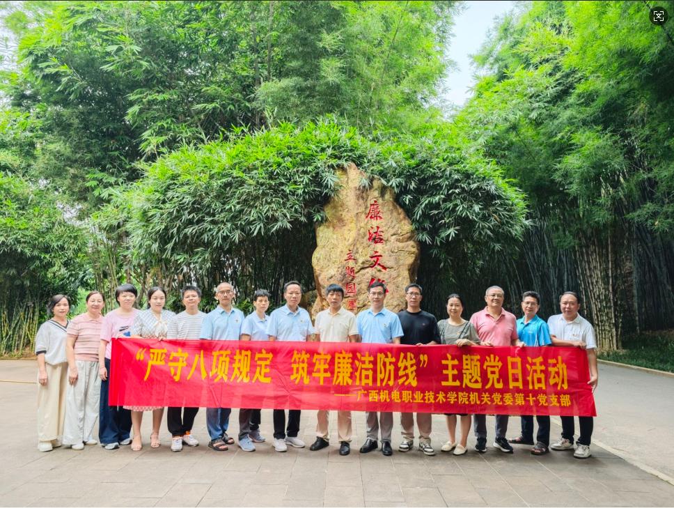 为学习贯彻中央八项规定精神,引导全体党员坚定理想信念,永葆清正廉洁政治本色,进一步树牢全体党员“知敬畏、存戒惧、守底线”的纪律意识。6月29日,机关党委第十党支部组织全体党员前往青秀山廉洁文化主题园开展“严守八项规定 筑牢廉洁防线”廉洁教育主题党日活动。