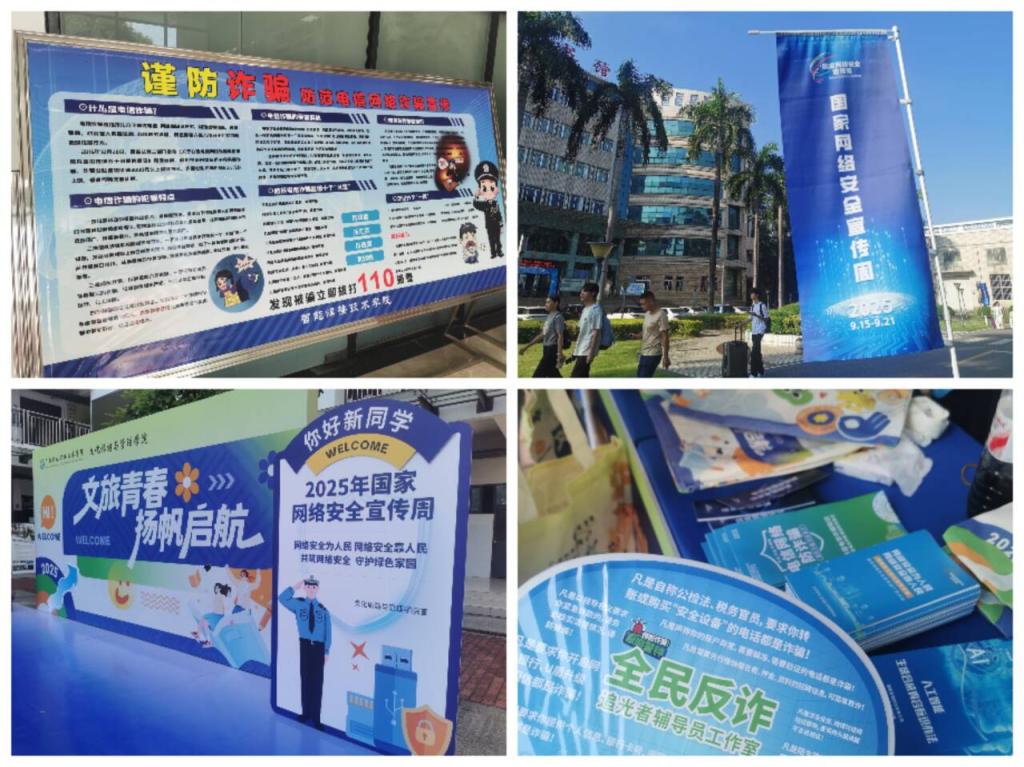 各二级学院积极响应,充分调动学生积极性、主动性与创造性,结合专业特色开展系列活动。组织全体学生观看“大中小学生反诈大讲堂”直播课程;以班级为单位召开“网络安全伴我行”主题班会,师生共同研讨防范网络诈骗、甄别网络谣言、规范网络行为等议题;依托中国大学生在线官网“2025年国家网络安全宣传周”专题学习资源库,获取网络认知、网络安全、反间谍等精品课程资源,引导学生开展自主学习;组织“网络安全知识闯关答题”活动,进一步巩固学习成效。