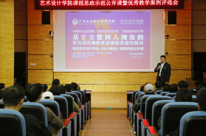 为全面贯彻落实中共中央办公厅、国务院办公厅《关于加强和改进新形势下高校思想政治工作的意见》、教育部关于印发《高等学校课程思政建设指导纲要》及自治区教育厅《全面推进广西高等学校课程思政建设的实施意见》等文件精神,结合《awc77万象城官网课程思政建设工作实施方案》文件要求,我院在学校统一部署下,于12月7日下午在第一学术报告厅举行了课程思政示范公开课暨优秀教学案例评会,会议由学院负责人刘永福教授主持,全体教职工和部分学生参与了本次活动。