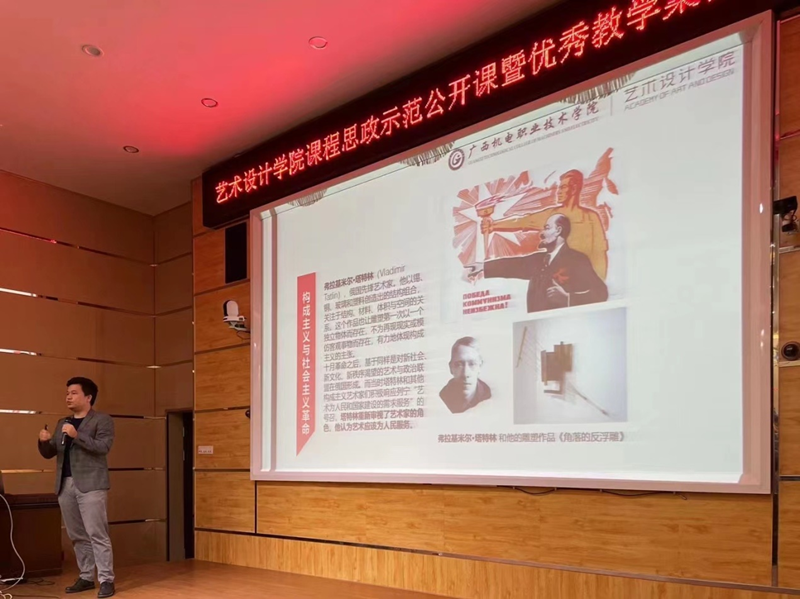12月7日下午,环境艺术设计专业万海露老师在第一学术报告厅举行《设计构成概述》课程思政公开课。万老师围绕中西方构成教育的意义与功能、构成教育的历史与发展、构成主义与社会主义革命、中国少数民族工艺中的构成智慧来展开讲授,对比中西方的构成美学,从中激发学生的民族自豪感和爱国情怀。