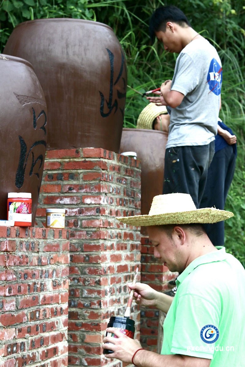 在实践中,他们分工明确、精心设计、潜心创作、团结协作,顶着火辣的太阳却没有丝毫退缩,大家戴着草帽,挥洒着汗水,用一个个灵动的笔触绘制出一幅幅美丽的画面。