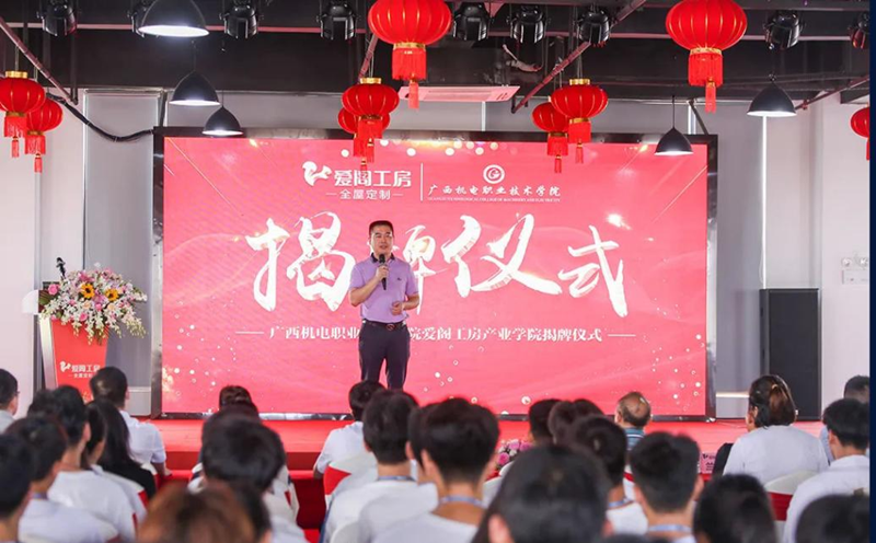 9月18日上午,爱阁工房全屋定制产业学院在南宁市良庆区春天工业园举行了隆重的揭牌仪式。出席本次揭牌仪式的有艺术设计学院院长刘永福、兰育平副院长、任慧敏副院长、吴海波副院长,爱格工房产业学院教学团队以及爱格工房董事长唐汤建国、总经理刘威等。