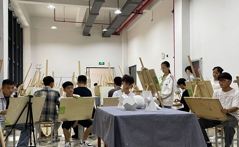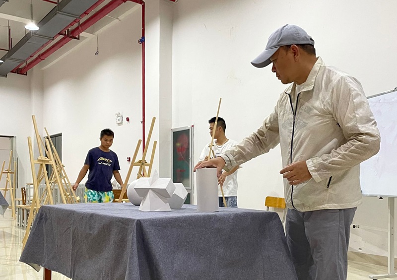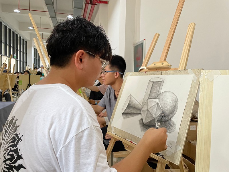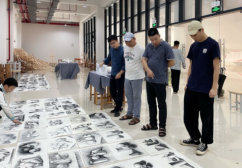 10月10日上午,艺术设计学院室内艺术设计、家具艺术设计、环境艺术设计和视觉传达设计2021级提前批艺术生在弘毅楼第五画室开展了“石膏几何形体静物写生”专业复测,考试结束之后随即进行了现场成绩评定。