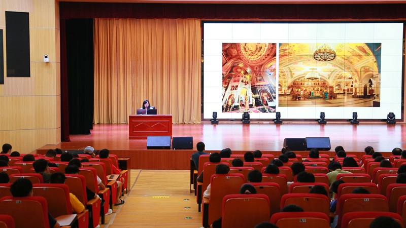 报告会上,曹丹博士通过自身的留学经历、艺术作品实践和学术研究成果,结合俄罗斯的绘画艺术、工艺品创作与建筑设计的审美特征、情趣,讲述了融合东西方文化的俄罗斯艺术之美。同时,就俄罗斯工艺美术教育发展现状、设计师人才培养等相关问题提出自己的独到见解和看法。曹博士强调,艺术的最终的表现形式,不仅可以反映出地域文化的形态之美,还可以体现出一种积极向上的时代风貌,引领着社会文明前进的脚步,丰富着人们精神文化需求。