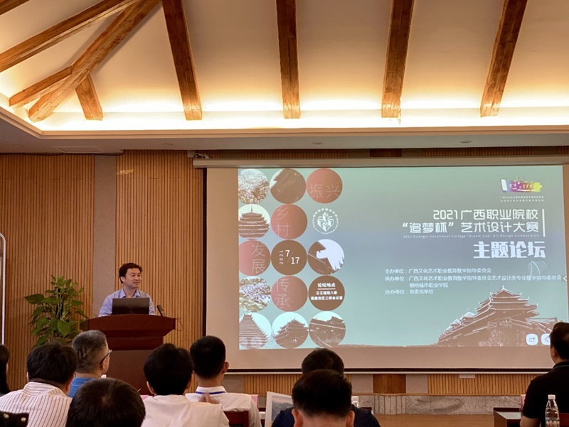 2021年7月17-18日,为推动中华优秀传统文化创造性转化、创新性发展,提升广西职业教育服务乡村振兴能力,我院教师参加广西职业院校2021年 “追梦杯”艺术设计大赛与教师发展学术论坛。本次大赛与论坛活动由广西文化艺术职业教育指导委员会主办,由广西文化艺术职业教育教学指导委员会副主任委员兼艺术设计专业教学指导委员会主任委员陈良教授担任论坛主持。