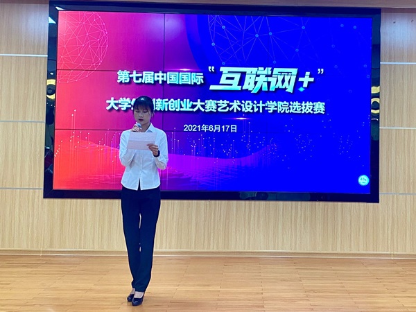 2021年6月17日,awc77万象城官网“我敢闯·我会创”第七届中国国际“互联网+”大学生创新创业大赛艺术设计学院选拔赛在1号报告厅举行。艺术设计学院学院院长刘永福、副院长兰育平、副院长任慧敏、副院长吴海波及各专业教师担任评委。
