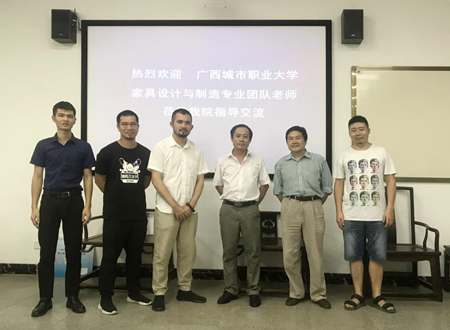 6月6日上午,广西城市职业大学家具设计与制造专业教师一行四人来我系桂作家具文化传承创新中心参观交流,交流会在系桂作家具大师工作室举行,家具艺术设计专业部分教师参与了座谈。
