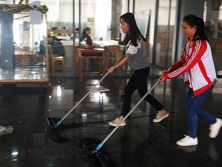 此次活动共有47名同学参加,活动现场,志愿者们以宿舍为组别,干劲十足,他们手拿扫帚、拖把等工具,对机房、画室、楼道进行清扫清理,并对垃圾分类清理。经过志愿者们的“美容”后,艺术楼变得更加干净整洁。