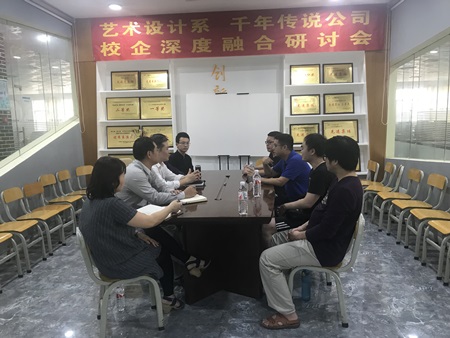 4月13日,广西千年传说影视传媒股份有限公司一行在董事会秘书梁建华、副总经理牛依河带领下赴我系开展研讨活动。系主任任民、副主任蓝鑫及动漫专业部分教师参加了研讨会。