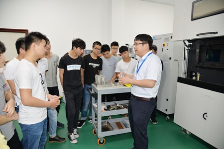 张培命工程师为同学们讲解高精度金属材料打印机的原理