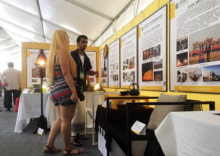 家具艺术设计专业吴海波老师为参展嘉宾作介绍