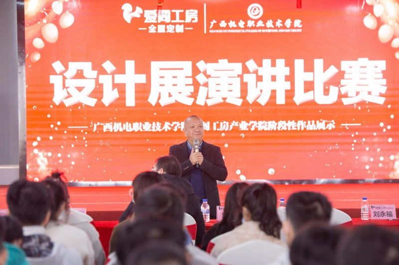 2021年12月30日,爱阁工房产业学院首届设计竞赛展演活动在爱阁工房产业学院报告厅隆重举行。艺术设计学院刘永福教授、兰育平、刘晶晶和刘倍存三位老师,以及爱阁工房董事长汤建国、总经理刘威等出席了本次活动。爱阁工房产业学院教师和学生100多名代表参加了展演活动。