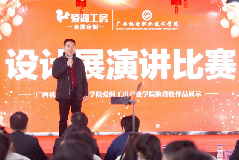 比赛现场,爱阁工房董事长汤建国先生致开场辞,对同学们在爱阁工房产业学院学习期间的表现给予高度赞扬,同学们无论在专业知识、职业素养、精神面貌上都体现出了机电职院学子的优良风采。他勉励所有同学们学好知识,打牢基础,增强实战,练就过硬本领,将在全屋定制行业大有作为。