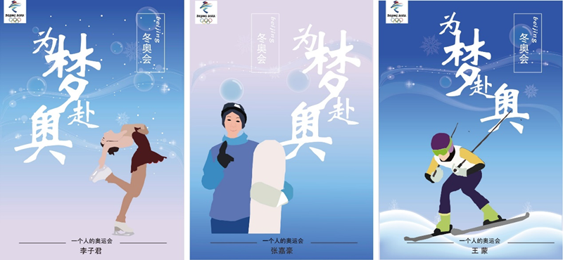 在距离2022年北京冬奥会开幕还有1个月之际,艺术设计学院学子运用专业知识开展“我为冬奥送祝福”主题创作活动。创作前,李君老师给同学们简要介绍了冬奥会的,包括举办时间、地点、规模、主要项目等,让同学们对冰上运动、雪上运动有了了解。创作过程中,同学们们悉心调研,用心感受冬奥精神,用心创作,将同学们对冬奥的祝福运用专业技能表达出来,展现对冬奥的无限期待,传递文化自信的热情。在经过背景调研、元素提取、小组创作等过程后,一幅幅饱含同学们祝福与希冀的作品诞生。