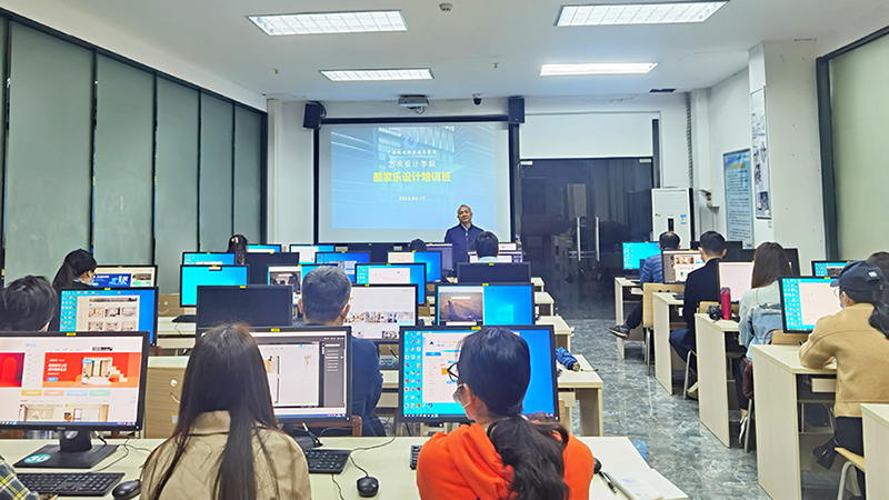 为了紧密对接行业企业的变化,更精准培养室内设计的高端创意、设计、管理、营销等创新链的复合型人才,4月17日星期日,艺术设计学院邀请了兰育平高级工艺美术师,为建筑室内设计、室内艺术设计、环境艺术设计、家具设计等相关专业的30多名教师开设了酷家乐·云设计培训。旨在通过教师的培训,让职业院校教师率先体验并逐步进入云设计时代,继而思考相关专业的人才培养方案改革,不断增强职业教育的适应性。