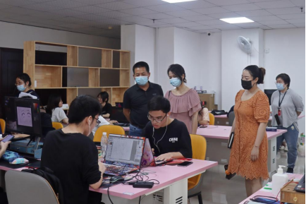 4月29日,艺术设计学院负责人刘永福教授率队到岂非数字动漫产业学院开展期中教学检查。刘永福教授深入教室、学生宿舍,分别向企业教师、学生了解产业学院日常教学管理、学生学习生活等情况。艺术设计学院产业学院负责人兰育平老师汇报了产业学院教学工作情况和学生的近况。