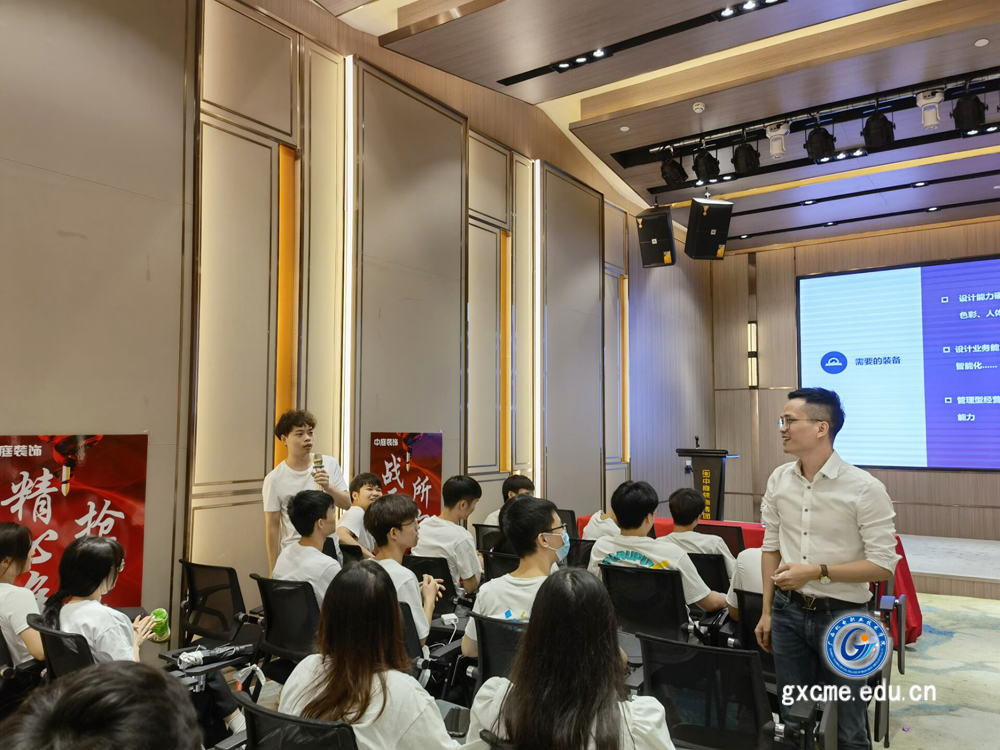 即签约仪式后,7月6日,环境艺术设计专业现代学徒制试点班在广西中庭装饰集团总部举行开班仪式。开班仪式上刘永福院长与吴文战副总裁分别发表致辞,提出了对此次现代学徒制试点班的学生们期许和要求。