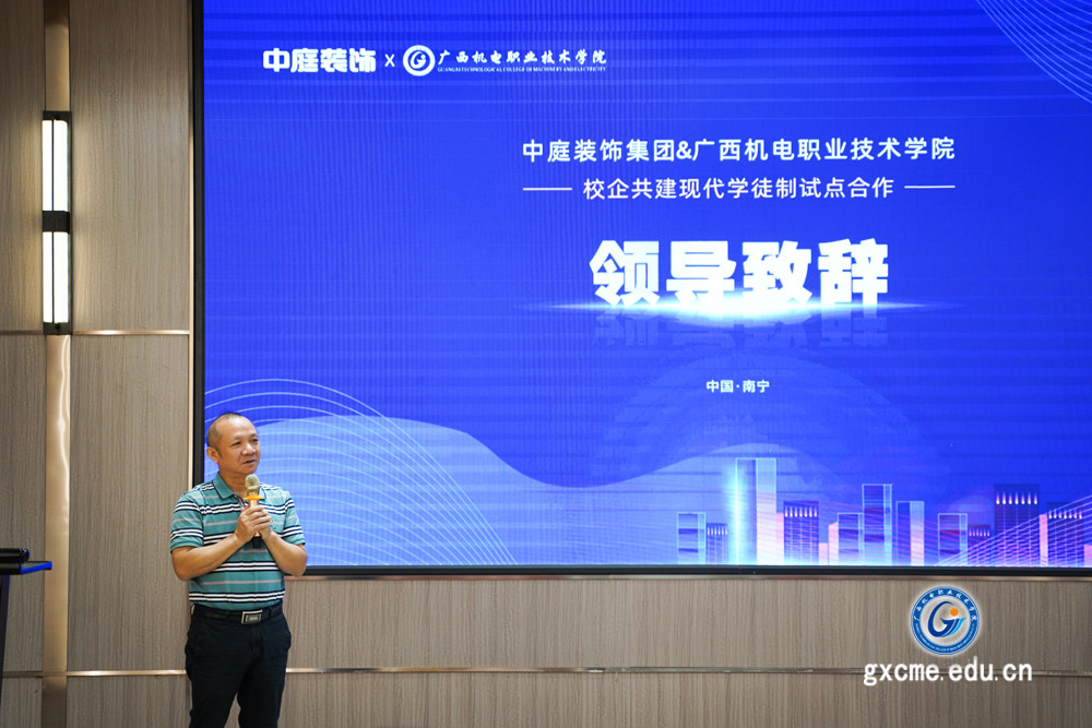 签约仪式上,刘永福院长指出,希望通过校企合作,充分发挥高校人才培养和服务社会的功能,加强高校人才培养与企业岗位发展之间的紧密联系,更好的为地方经济建设和社会发展服务。通过借助企业的优势,实现人才培养的目标,提高人才培养的质量,双方要紧密联系,积极推动,推进校企合作落到实处,共同发展,最终达到互利共赢。广西中庭装饰集团副总裁张浩熙指出,中庭秉承“源于社会,回报社会”的社会责任理念,集团积极参与社会公益事业,将企业的理念延伸至教育领域,希望学生从学校到职场实现零衔接,在中庭职场的舞台上不断发展,实现学校、学生、企业的三赢。