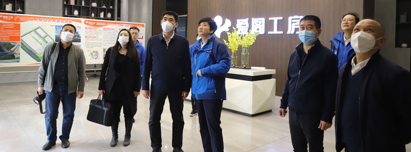 黄小敬书记一行在爱阁工房创始人兼总经理汤建国、副总经理刘威陪同下参观了爱阁工房的生产车间和2000m²的生活体验中心,刘威副总经理全面介绍了企业各个板块发展情况及未来发展规划。