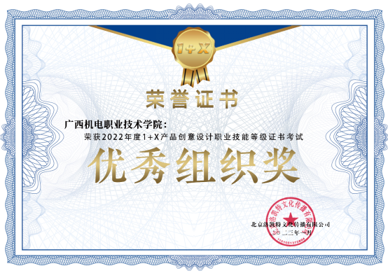 图:万象城官网获2022年度1+X产品创意设计职业技能等级证书考试优秀组织奖
