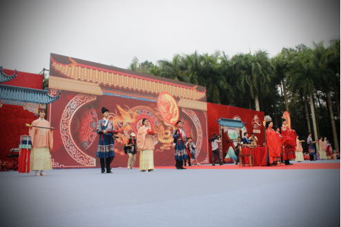 为了树立学生正确的艺术观和创作观,以美育人,传承和和弘扬中华优秀传统文化,全面提高学生审美和人文素养,增强文化自信,4月22、23日,我院室内艺术设计专业教师云宁受邀带学生参加了中共南宁市委宣传部、南宁市文化旅游广电局、南宁广播电视台主办,南宁市非物质文化遗产保护协会协办的明制汉婚大典演出和志愿者工作。