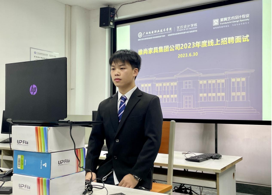 近日,家具艺术设计专业举办了维尚家具集团公司2023年度线上招聘会,本次活动包括企业宣讲和面试答辩两个环节。维尚家具工艺中心负责人首先从公司背景、岗位类型和薪资待遇等方面全方位介绍了公司今年的招聘计划,随后便进入了一对一面试阶段。招聘会中,家具专业21级学子认真聆听企业介绍沉着回答考官面试问题,充分展现了我院毕业班学生勇于进取的精神风貌。