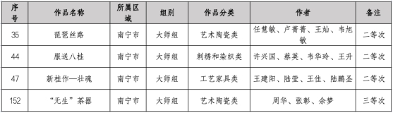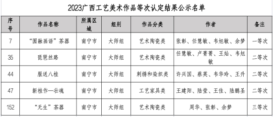 2023广西工艺美术作品等次认定结果截图