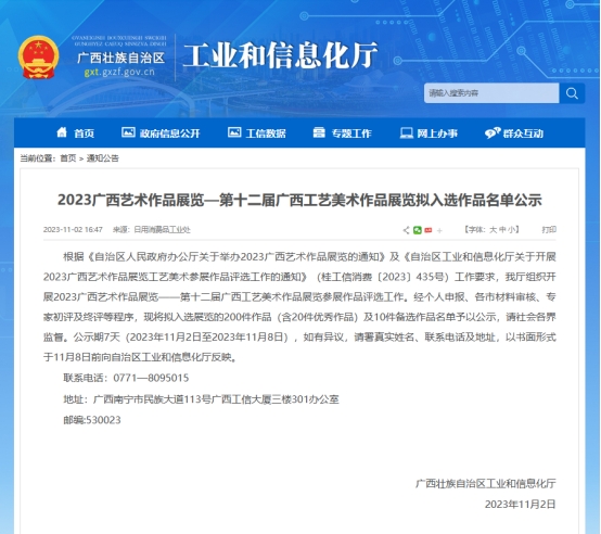 2023广西艺术作品展览-第十二届广西工艺美术作品展览入选作品名单截图