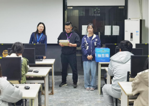 赛中,视觉传达设计团队严格按照赛前签到、抽签加密、监考等工作,确保比赛工作万无一失。选手在比赛中分别进行理论考试和实操比赛,共10个小时的比赛时长,各个环节井然有序地进行。