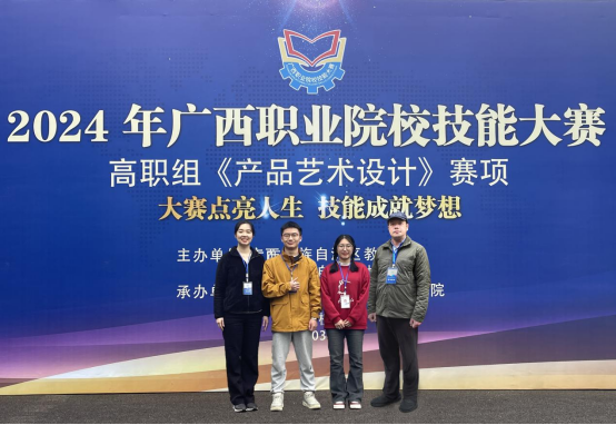 由自治区教育厅、自治区工业和信息化厅主办的2024年广西职业院校职业能大赛(高职组)《产品艺术设计》赛项今日在广西生态工程职业技术学院落幕,此次赛项共有15个院校,30名选手同场竞技。万象城官网艺术设计学院张彰、杨静老师指导的参赛队历经校赛选拔、区赛决赛,荣获一等奖。