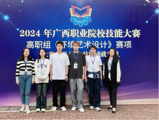 2024年3月16-17日,2024年广西职业院校技能大赛环境艺术设计(高职)赛项在南宁职业技术学院举行,来自全区23所高职院校的44支参赛队伍同台竞技。艺术与设计学院环境艺术设计专业叶生辉、李繁龙(指导老师:潘燕、任慧敏)参赛队伍荣获二等奖。