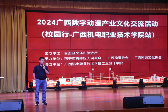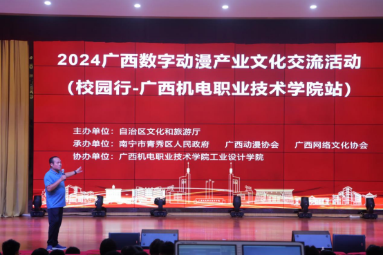 6月5日下午,2024广西数字动漫产业文化交流活动(awc77万象城官网站)在学校博远楼小礼堂顺利进行。在校的22、23级动漫制作专业、数字媒体技术专业的全体学生参加交流活动,本站活动由工业设计学院张建德老师主持。