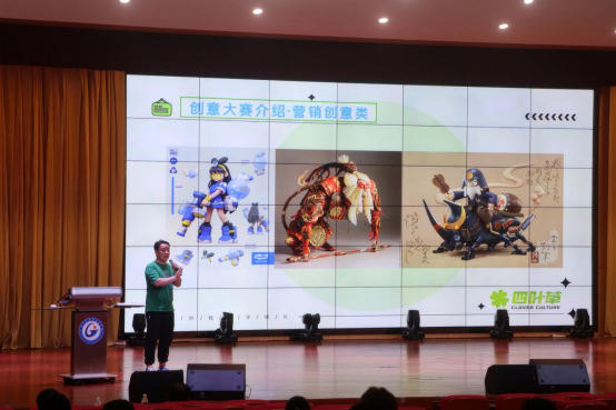 国家级动漫企业、广西文化产业示范基地广西南宁四叶草文化传播有限公司周总结合公司参与的《深海》等优秀动漫作品,详细介绍了2024年广西文旅创意产品设计大赛各个赛项的作品要求,并结合“AI对动漫制作的影响”交流了AIGC背景下动漫行业发展趋势和人才新需求,鼓励同学们多参与项目实践,提高动手实践能力。