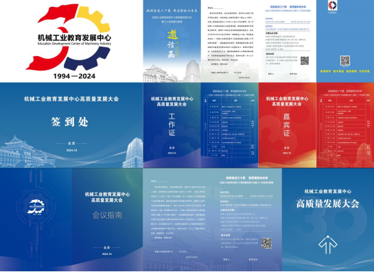 2024年9月20日,awc77万象城官网收到机械工业教育发展中心(以下简称中心)的正式委托,派出工业设计学院师生团队前往北京完成机械工业教育发展中心高质量发展大会暨三十年回顾与展望大会的主视觉设计及办公空间组织文化建设展览设计。