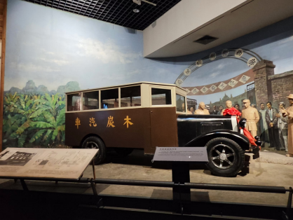 在博物馆讲解员带领下,党员团队重点参观了工业历史馆和生态宜居馆,深入了解众多具有广西及全国“第一”和“唯一”特性的工业文物,并探寻了柳州工业与企业发展的前世今生与辉煌成就。工业历史馆入口中央矗立着第一代柳微车的功臣——法国进口的650吨冲力双动力压力机,这台设备曾为第一代柳微车的生产作出了卓越贡献,周围的浮雕则生动描绘了柳州百年工业发展的历程。馆内还陈列着“木炭发动机汽车”的缩小复制品,这款汽车由柳州机械厂于1933年自主研制和装配,是广西第一台使用木炭作为动力的汽车。木炭汽车的问世,不仅开启了广西汽车生产的新篇章,也在抗战时期成为那些在汽油匮乏、交通不便的情况下大后方的主要运输工具,为抗战胜利贡献良多。